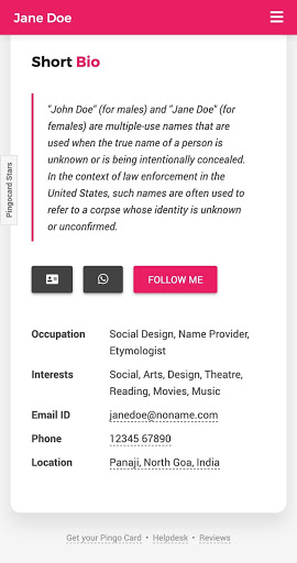Pingo Card - India's first e-profile card