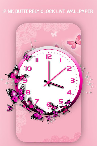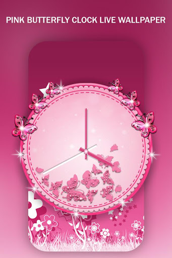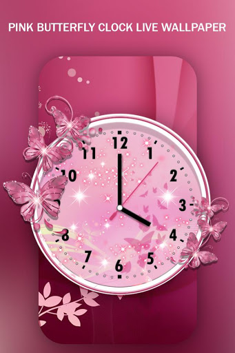 - Free Pink Butterfly clock displaying your phone time using a round clock face !