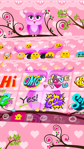 Pink Owl Emoji Keyboard Theme for Emoji,Emoticons and Smileys Keyboard.please install Emoji Keyboard from