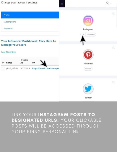 Post or Repost directly from your "Pinn2" App with the ability to add relevant clickable URLs and hashtags to each post on Instagram.