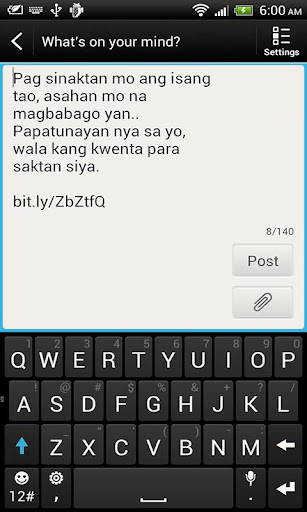 Pinoy Love Advice contains many advice and quotes from our famous love gurus like Papa Jack, Bob Ong and many more which you can share through Friend Stream, Facebook, Twitter, email, sms or text, etc..