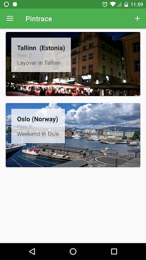 Pintrace allows you to create you travel diary by adding your journeys (Traces) and visited places (Pins).
