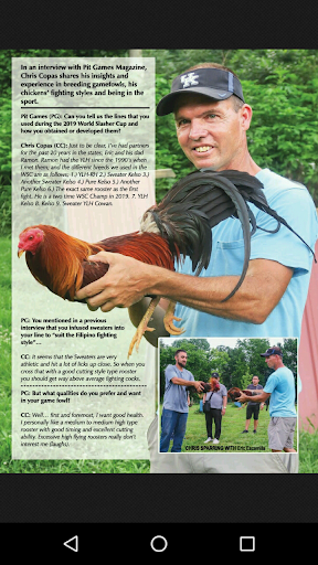 Pit Games was founded in 1994 by its then Publisher, Art Tolentino. Pit Games, moved forward with lots of innovations and changes, when Mr. Emmanuel “Manny” Berbano, a gamefowl breeder and fresh from his retirement as a Coca-Cola executive took over the helm of this magazine. A lot of changes took place and the first noticeable improvement was making it bigger and special from its original size of 7”x 10,” the publisher decided to make it a little bigger and opted for 8.5 x 11 inches size, not only that, from book paper to C2S quality paper that is glossy and very elegant. Every page is a work of art, from entertaining and informative articles to quality pictures that are crisp and clear. Pit Games is the gamefowl industry’s premiere entertainment magazine and we are proud to be the official magazine of the National Federation of Gamefowl Breeders, Inc., the biggest organization that is dedicated to the growth of the gamefowl industry.