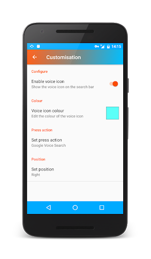 Want the Google logo on the left side of the bar and the voice icon on the right? Or just want the voice icon on the search bar? No problem! The app has you covered. Whether you want only the voice icon on the search bar, or want to choose the position for the icons, the app allows you to do that.