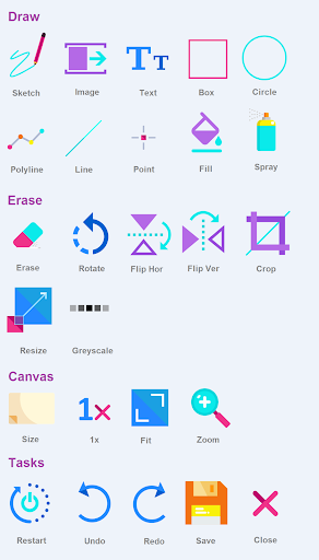 Expand your creativity and have fun. Create your own art and pictures and share these with friends. Make greeting cards with a personal touch. Images for your wallpaper and screen saver. Selfies and photographs with added effects. Cartoons, illustrations, sketches and doodles.