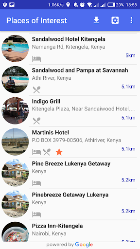 6) Search for nearby places by type