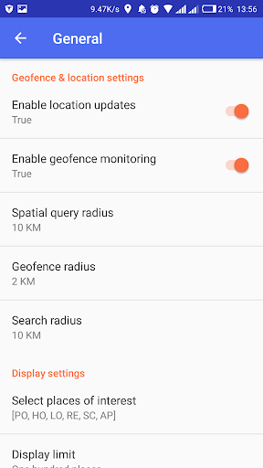 3) Notifications when near the favourite places (geofence monitoring)