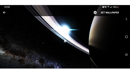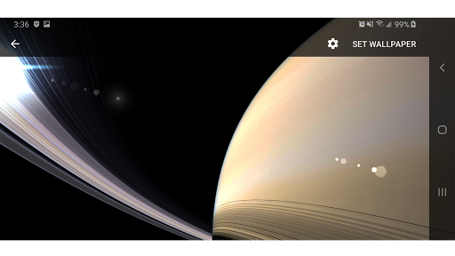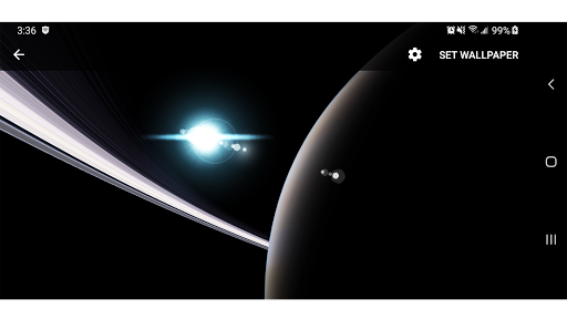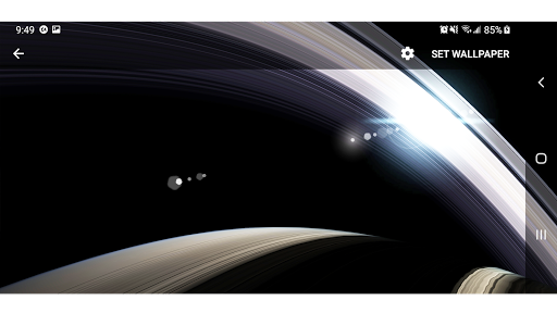 Fully 3D Parallax Live Wallpaper Rendered With Scientifically Accurate , Detailed Planet Saturn , Details of Saturn's icy rings Along with it's Main Moons : Titan , Enceladus , Iapetus , Rhea , Dione , Mimas and Tethys, Including Beautiful and Realistic Looking Sun from Space with Lens Flares and 3D Visualization of Colorful Milky Way Galaxy. Dynamic Interactive With Exploration Mods, Along with Saturn's Moons. When Not Visible Application is Completely Stopped, it doesn't Run Anything in Background Plus Very Smooth and Battery Efficient.