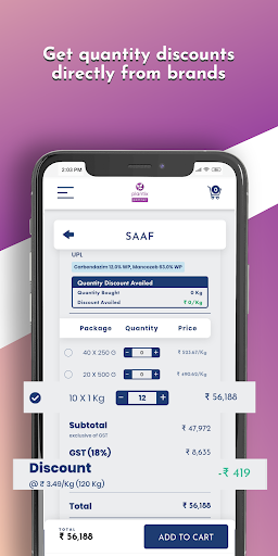The Plantix Partner app is the best solution for product supply and demand generation, exclusively developed for agri-input retailers in India. Plantix Partner lets any agri-input retailer purchase products directly from top brands at the best rates. Whether it is seeds, pesticides or herbicides, choose your required product, select the quantity and see the net rate directly after any activity.