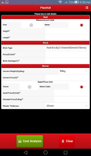 With just simple steps, users can know the numbers of bricks needed, volume of mortar needed and their cost.