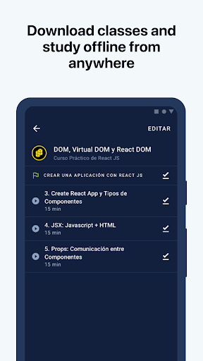With this app, you can download your classes to study offline, and you will have access to exclusive content adapted to your needs. Our methodology is optimized to make better use of your time and move without stopping learning.