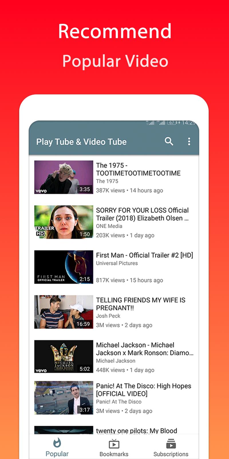 1. Play Tube HD & Video Tube Player Pro is using the third-party API source from YouTube. All the free video is provided by Youtube services. And you can search and play the videos on Youtube.