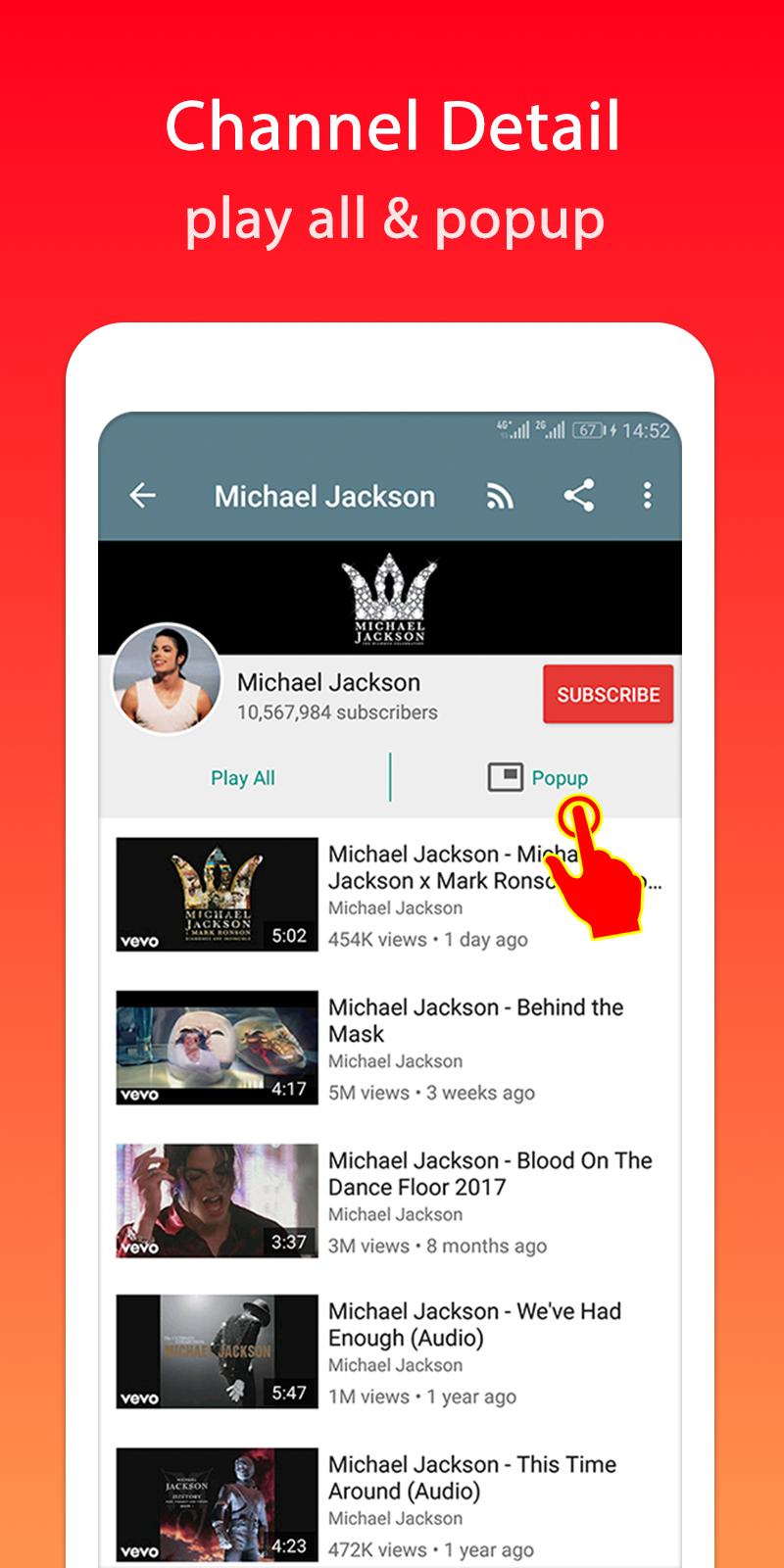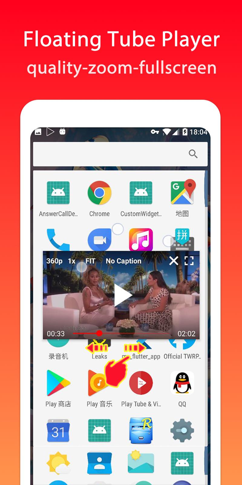 Lite video tube player for you search videos or channels, play full screen or floating popup mode.