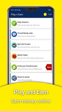 You can play with spin slots, hit and break cube, daily check-in, by watching video and invite your friends to play n earn - earn money online.