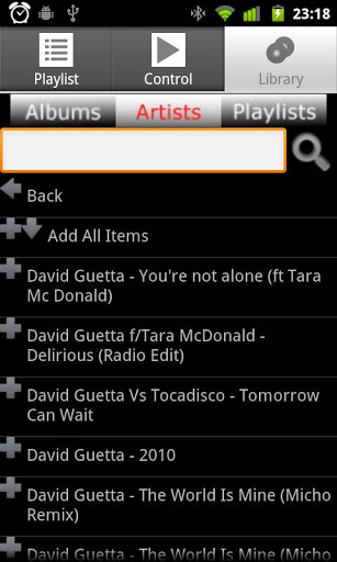 * Access your playlist and Media-Library. Search and browse your Media Libray by albums, artists and playlists. Enqueue new songs to playlist from your phone. Switch to saved playlist or enqeue all songs from artist or album. You can even edit the playlist on phone.