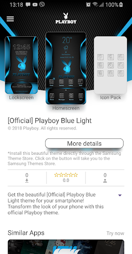 Get the beautiful Playboy Blue Light theme for your smartphone! Transform the look of your phone with this stylish, custom-designed homescreen and its Playboy motives. It has: