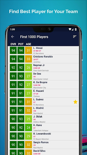 The data base of the application is constantly updated with FIFA 19 game. If you want to follow the latest game data of FIFA 19, follow our application's updates.