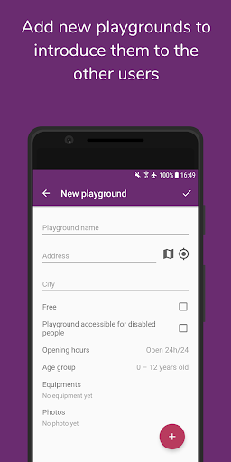If you know or notice a playground that is not yet on the map, add it so that the other users can discover it too and enjoy with their kids.