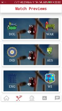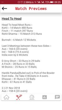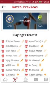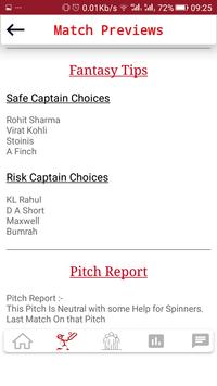 * Match Previews: This screen provides 'Possible11' for both playing teams, squad details and Full Depth Analysis of Pitch Report.