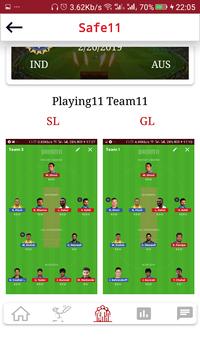 * Safe11: This screen gives best fantasy, Dream11 teams for each match specially for small leagues.