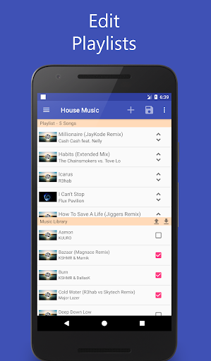 Modify existing Playlists on your own. Arrange and change the order of the songs in a Playlist. Modified Playlists will instant appear in other Music Player Apps.