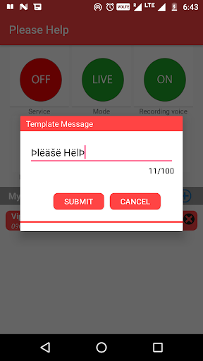 We have also added a voice recording facility in this App, activated as soon as the App button is pressed. Voice recording starts immediately, but the message is sent with a 10-second delay. You still get 10 seconds to cancel the App if it's pressed by mistake.