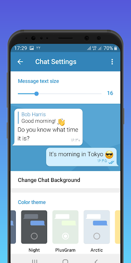 plusgram is an UNOFFICIAL messaging app uses telegram's API with proxy and it has some feature
