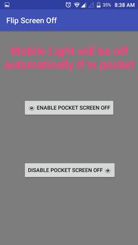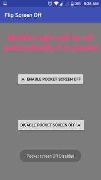 Now off your screen light easily with this new compact easy to use application. Mobile screen light off when mobile is in pocket safely. Even you can off your mobile when is turned flip or display cover by any obstacle you can save your mobile from false unnecessary touch.