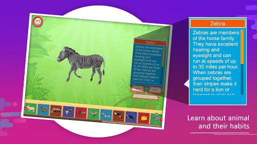 "Pocket Zoo 4D - Animal" gives the real world experience of the zoo environment sitting comfortably at your home. The Animal cards are designed with awesome graphics and exciting animal sounds. Kids can interact with the animals helping them to learn their behavior and other attributes. The app is perfect for kids to learn about the nature of animals sitting at home and be expertise in recognizing the animal.