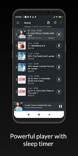 Podcast App - Free Podcast Player is a very simple podcasts app that gives you access to more than 150,000 different pocket casts programs, for a total of more than 9,000,000 episodes of podcasts. Of course, you can find podcasts in tons of different languages: English, Spanish, Italian, French, German, etc. in this podcast app. This podcast player supports podcast streaming and podcast downloading as well. It also incorporates an audio and video player that resumes podcast playing where you left it, so you don't have to worry about pausing and having to start over.