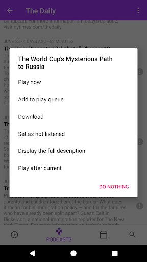 - SLEEP TIMER : the sleep timer will stop the app at the time you choose or after a chosen number of episode listened.