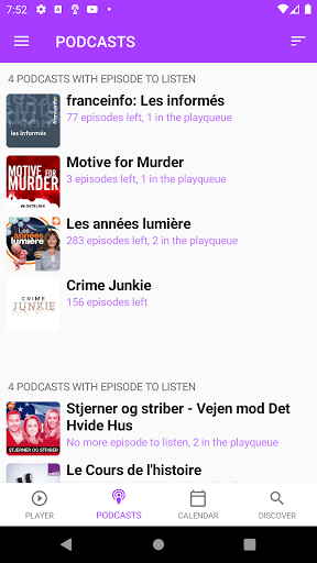 - AUTOMATIC DOWNLOAD : Episodes are downloaded (if you asked for it) and provide an offline listening.