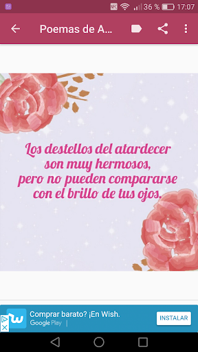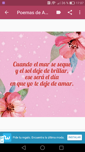 Demuestra tu amor en cualquier momento del día, descarga ya mismo esta aplicación "Poemas de Amor y Amistad" y utiliza los poemas de amor para enamorar a ella, para enamorar a tu marido o frases de amor para decirle a tu novio.
