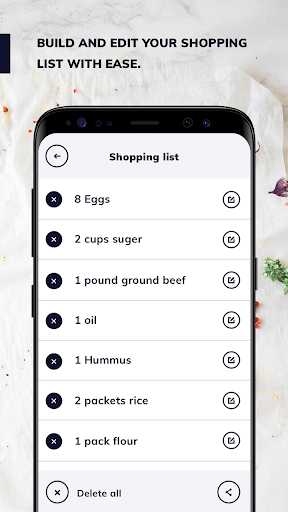 • Add each recipe’s ingredients to a smart shopping list and share to your favorite to-do app.