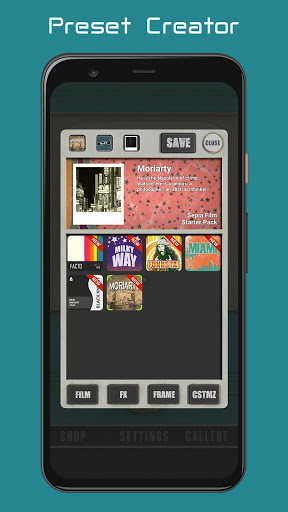 For your individual and personal look you can change the film, effect and the frame of your image before you save your instant photo to the gallery.