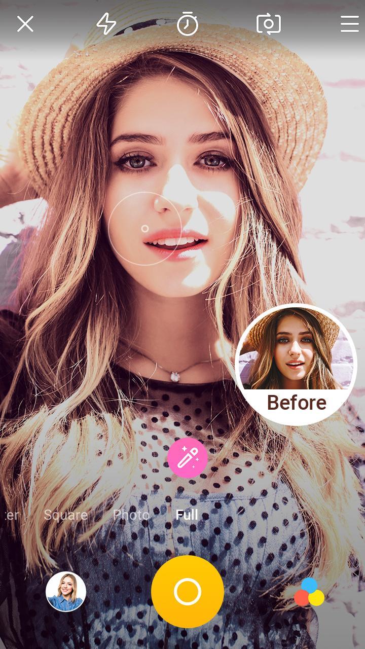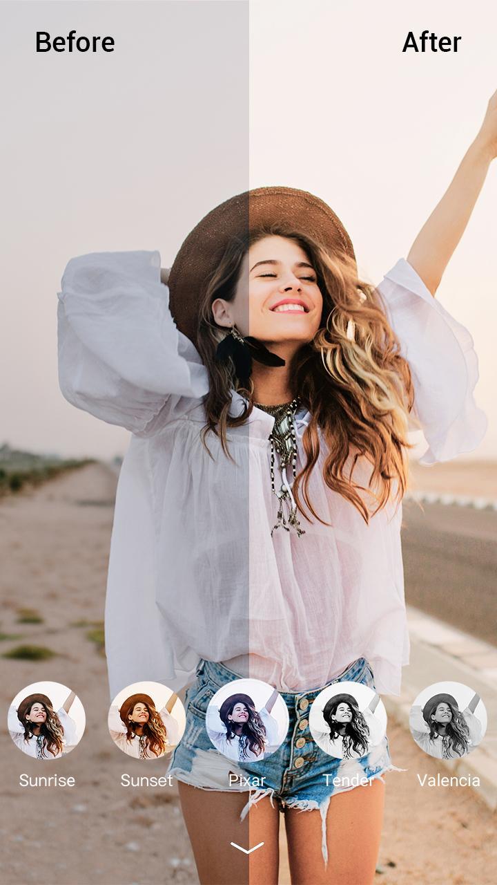 Swipe left and right to switch between filters and take photo with Timer, take selfie easier.