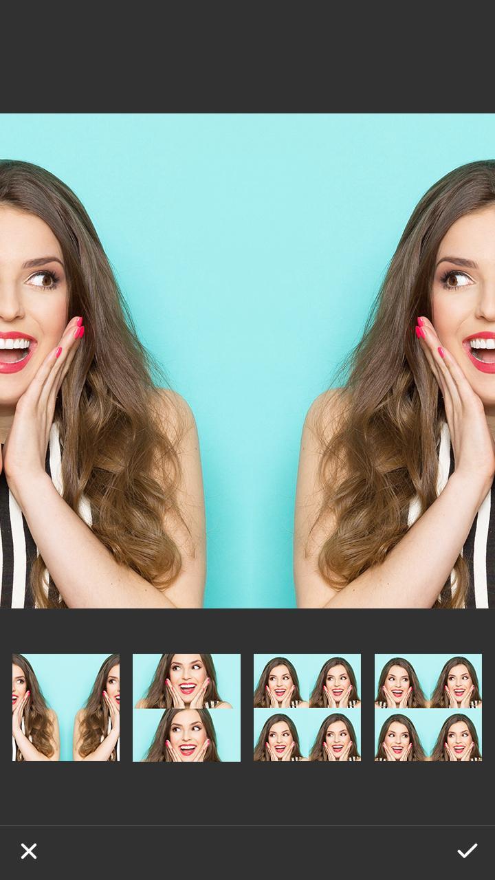 Poni Camera has more 80 different collages, including stylish and classic collages. You can combine photos in different ways, real-time show the collage effect, you can select the best one then edits.