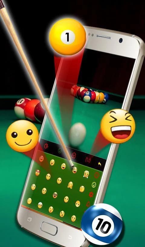- Install the New Free TouchPal Pool Table Emoji Keyboard theme ---> Press its icon ---> It would be enabled by TouchPal Emoji Keyboard automatically!