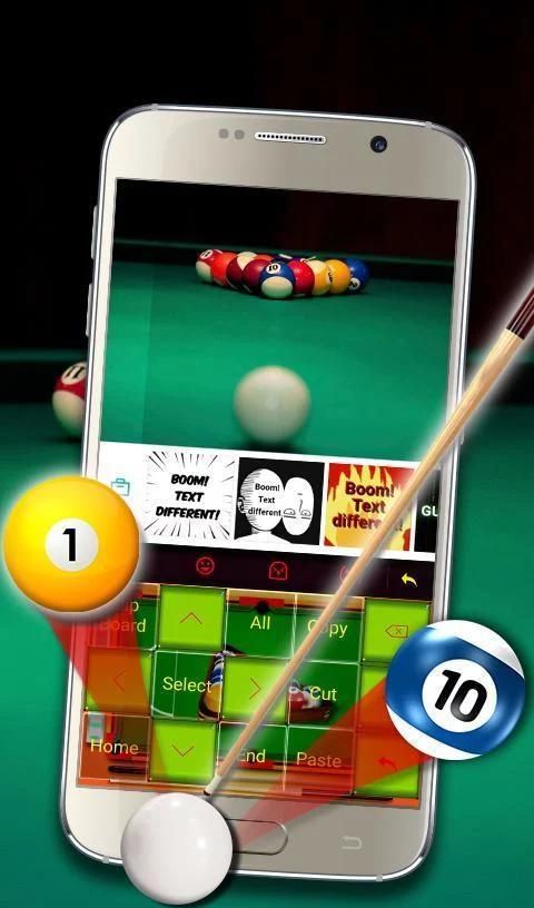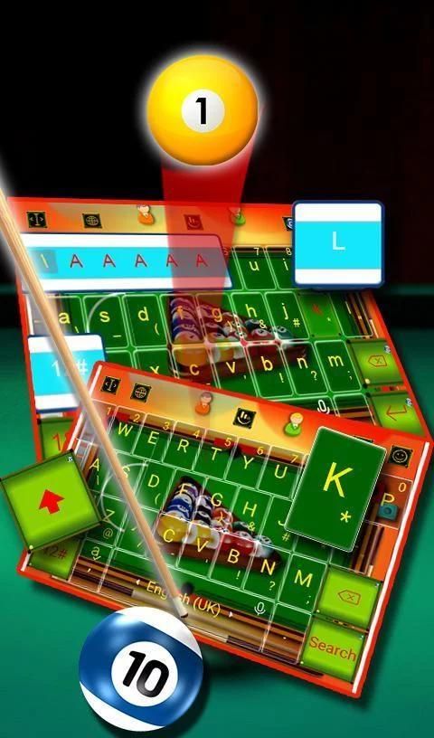 New Free TouchPal Pool Table keyboard theme will bring your keyboard & text input a real new look & feel,Pool Table keyboard theme make your Android device keyboard cool,cute and unique. Check Pool Table keyboard theme FREE personalized design for your TouchPal Emoji Keyboard right now! Thousand of FREE and beautiful themes are waiting for you. Go and typing fun!