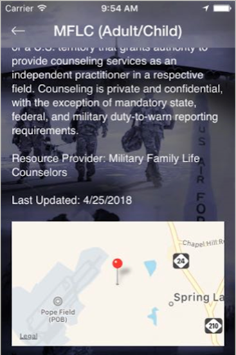 The Pope Army Airfield Application provides real-time updates about what is happening at and around Pope. In addition, there is an easy to use phone directory and resources for supporting the lives of Pope personnel and their families.