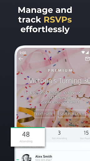 See who’s attending, edit your invitation and send messages to your guests all in one place.