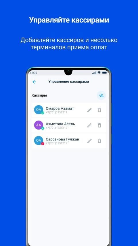 Добавляйте, редактируйте и удаляйте кассиров и несколько терминалов оплат. Просматривайте их историю операций.