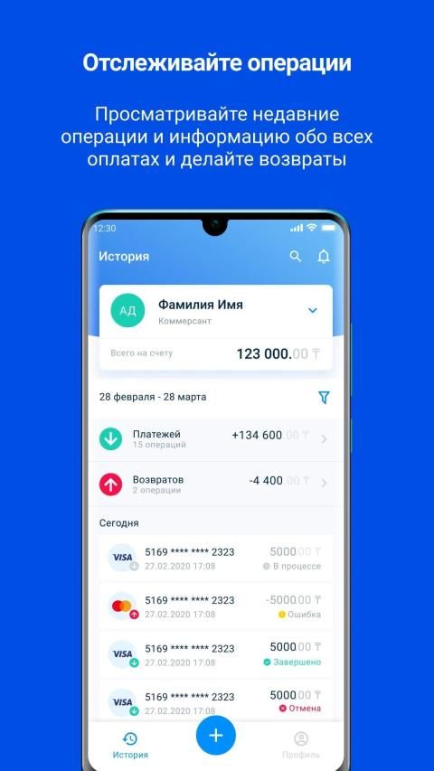 Просматривайте недавние операции и информацию обо всех оплатах и делайте возвраты.