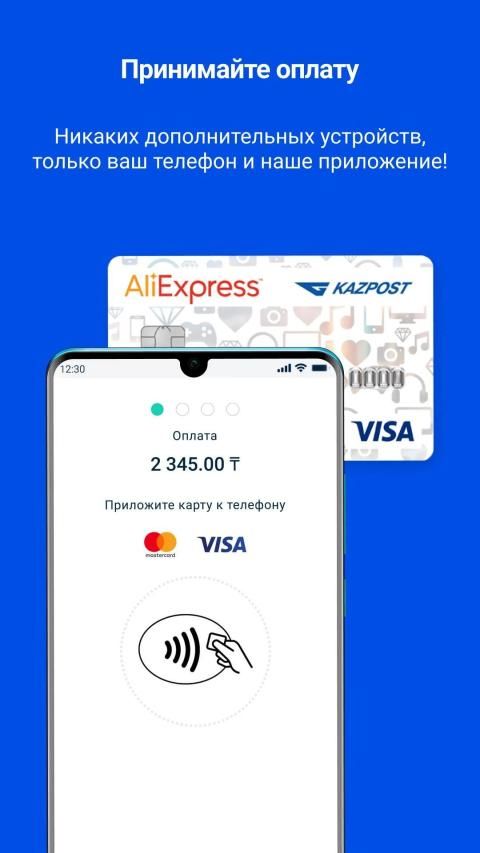 Принимайте оплату прямо с мобильного телефона. Никаких дополнительных устройств, только ваш телефон и наше приложение!