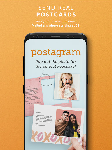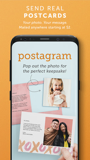 Use photos from Instagram, Facebook and your photo gallery. New card designs change seasonally. Customize the colors to match your style. Send photo postcards for only $2. (Price includes printing and delivery to anywhere in the USA)