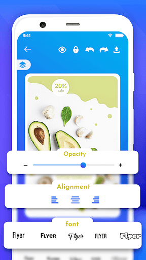 * Make your custom flyer by adding text, changing text and fonts with Multiple layers.