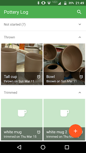 Pottery Log keeps track of your ceramics throughout their creation lifecycle. Add photos and notes for each stage: throwing, trimming, bisquing, and glazing.