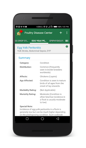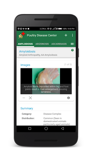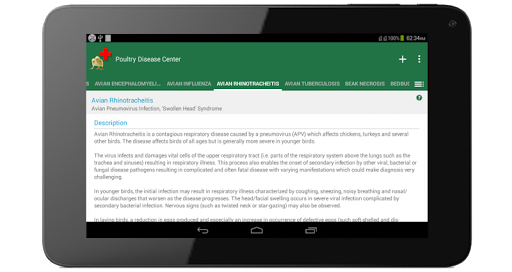 Contains more than 100 poultry diseases (viral, bacterial, fungal, internal/external parasites, deficiencies and complex conditions) with explanatory photos.