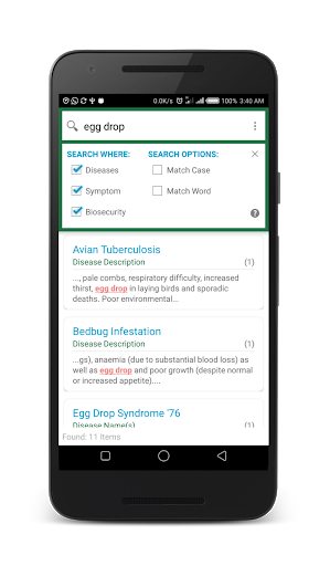 Find all occurrences of any poultry disease search term or keyword within the poultry disease database (offline).