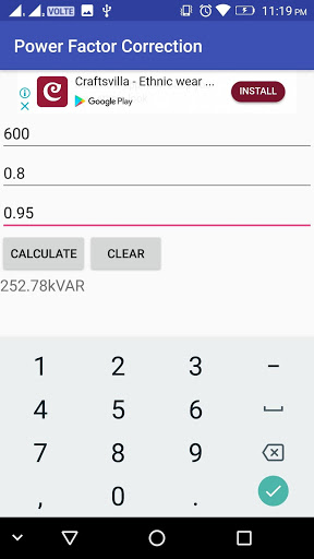 This electrical calculator is very easy to use and gives a quick result(in kVAR).